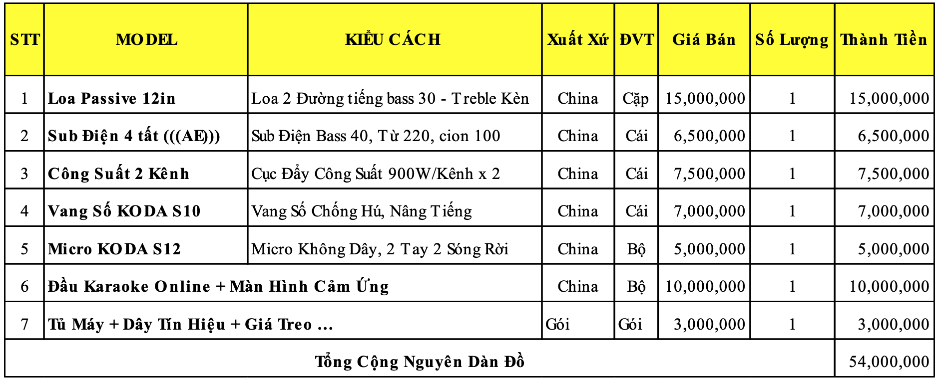 Công ty chúng tôi sẽ đầu tư 100% vốn vào mỗi phòng 01 dàn âm thanh Karaoke với chất âm chuẩn từ các thương hiệu âm thanh cao cấp trên thị trường chi tiết như sau.